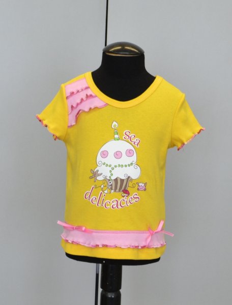 Фуфайка девочк., с рюшами на плече и печатным рисунком на груди (рибана) - 158.62 р.
