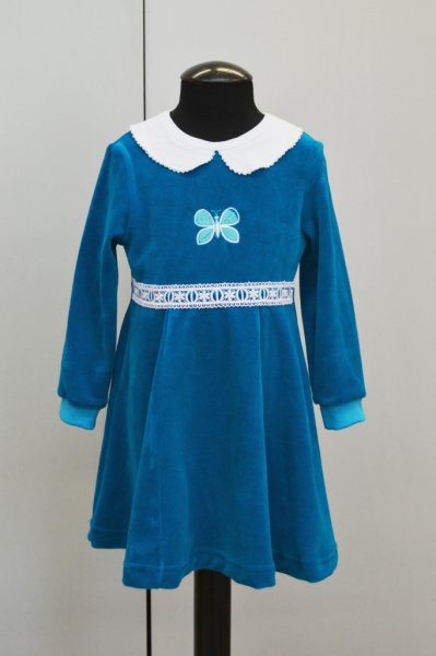 Платье с вышивкой и отделкой кружевом, длинный рукав-фонарик (велюр) - 352.66 р.