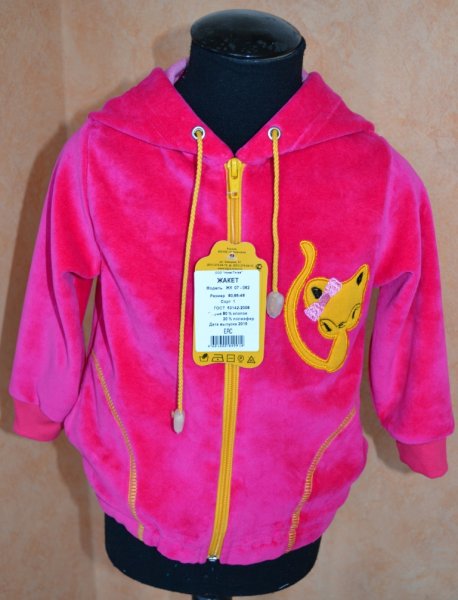 Жакет ясел.,велюровый с аппликацией, на молнии с капюшоном, с карманами - 330 р.