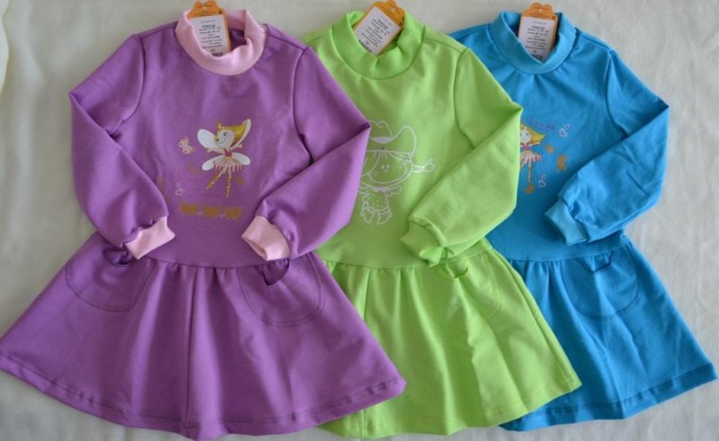 Платье с длинным рукавом с двумя кармашками, воротником-стойкой и аппликацией по переду (футер с лайкрой) - 385 р.