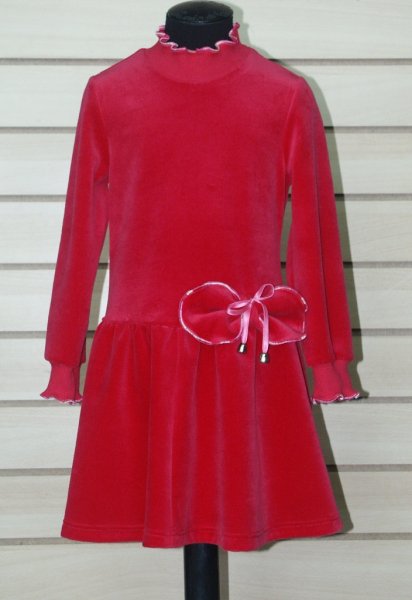 Платье с длинным рукавом на манжете, круглым вырезом и бантом по переду (велюр) - 364.98 р.