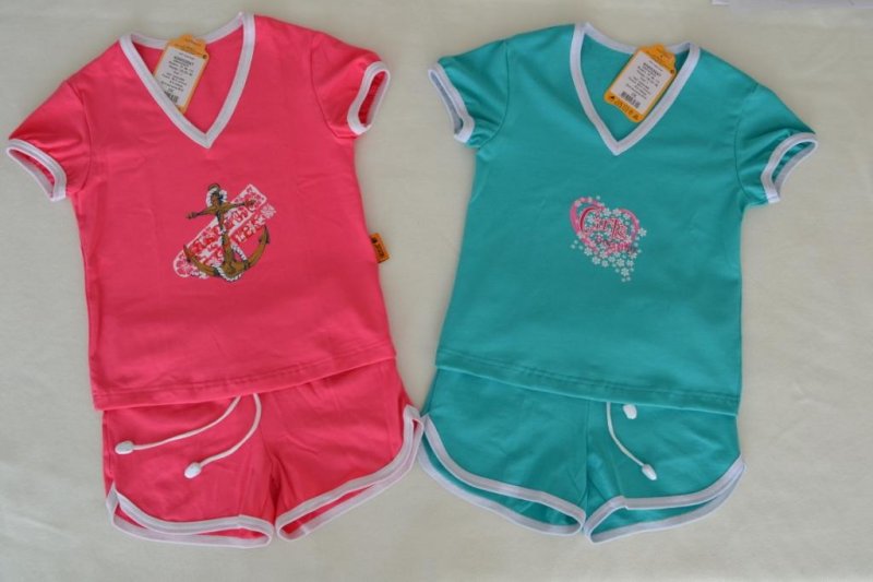 К-т девочк.:футболка с "V"образным вырезом и печатным рисунком на груди + шорты со шнуром (кулирка с лайкрой) - 261.80 р.