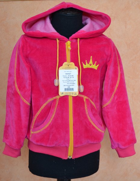 Жакет на молнии, с капюшоном, двумя карманами, вышивкой, оформлен декоративными строчками (велюр) - 400 р.